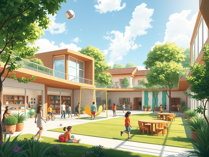 Dans la « Maison des Jeunes », on imagine un endroit extérieur où il y aurait des espaces verts, des espaces sportifs ainsi que des jeux pour les plus petits. A l’intérieur, on propose de quoi se reposer ( canapés, chaises, poufs, fauteuils… ), de quoi cuisiner et avoir des moments de convivialités. Il faudrait également de quoi s’amuser ensemble, des espaces informatiques pour se renseigner et s’informer, ainsi que du matériels de cinéma et de théâtre et pour finir une bibliothèque/ludothèque pour se détendre.