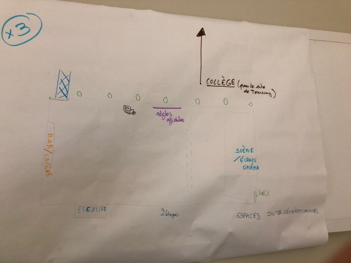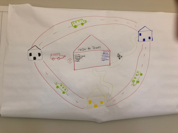 Pour cette « Maison des Jeunes », plusieurs idées ont été proposées : une gestion autonome ou un animateur présent pour jouer avec les jeunes mais garder un esprit d’accueil libre. Il n’y aurait rien d’imposer. De plus, il y aurait des permanences de professionnels autour de la prévention et de l’orientation pour sensibiliser les jeunes sur divers sujets.